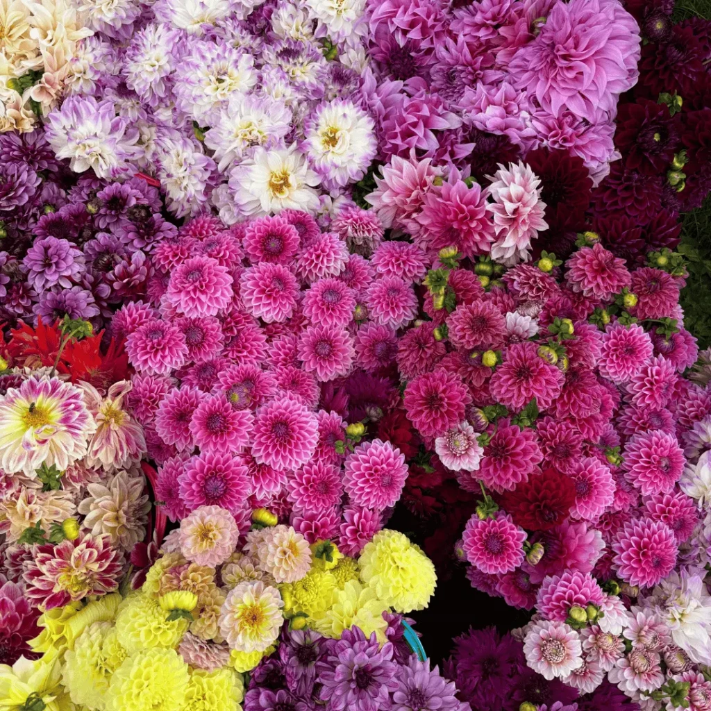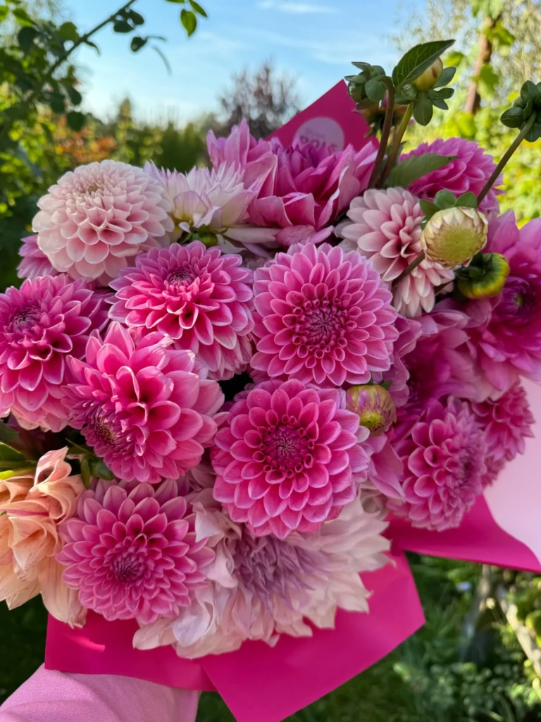 Dalie + inne kwiaty, mix pastelowy lub monokolor – 65 zł